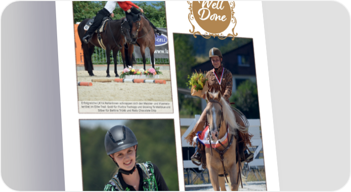 SWRA SPORT Erfolgreiche LK1A Reiterinnen schnappen sich den Meister- und Vizemeis- tertitel im Elite Trail: Gold für Flurina Tschopp und Glowing To Maliblue und Silber für Bettina Trüeb und Rods Chocolate Chip In ihrem letzten Youth Jahr gab LK2B Jugendliche Lea Tanner nochmals Erfolgreiche SWRA LK2B Jugendliche: Enie Büngen gewinnt Gold im Youth richtig Vollgas: 4 Goldmedaillen konnte sie sichern, darunter Gold im Ranch Trail und Youth Ranch Riding sowie Silber im Youth Western Ranch Youth/Elite Western Pleasure und Youth/Elite Western Riding! Rail und Youth Western Horsemanship und wird Reserve All- Around Champion Youth 5959
