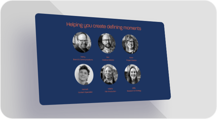 Helping you create defining moments Henry Brand & Communications Ben Creative Director Karen Project Director Hannah Content Specialist Valeria Film Production Millie Research & Strategy