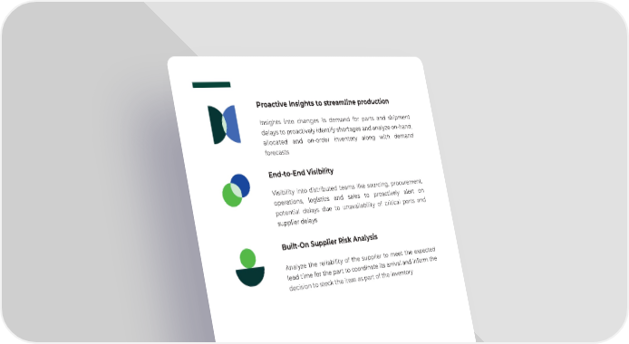 Proactive Insights to streamline production Insights into changes in demand for parts and shipment delays to proactively identify shortages and analyze on-hand, allocated and on-order inventory along with demand forecasts End-to-End Visibility Visibility into distributed teams like sourcing, procurement, operations, logistics and sales to proactively alert on potential delays due to unavailability of critical parts and supplier delays Built-On Supplier Risk Analysis Analyze the reliability of the supplier to meet the expected lead time for the part to coordinate its arrival and inform the decision to stock the item as part of the inventory www.conversight.ai 4