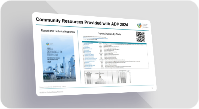Annual Decarbonization Perspective 2024 Page 13 Community Resources Provided with ADP 2024 Report and Technical Appendix Inputs/Outputs By State Support provided by Breakthrough Energy © 2024 by Evolved Energy Research 14