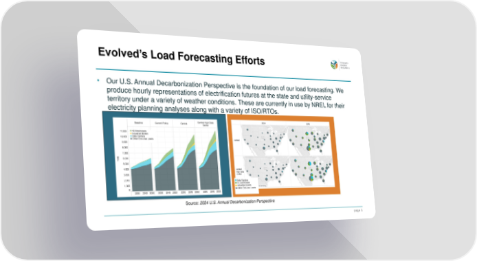 p a g e 3 Our U.S. Annual Decarbonization Perspective is the foundation of our load forecasting. We produce hourly representations of electrification futures at the state and utility - service territory under a variety of weather conditions. These are currently in use by NREL for their electricity planning analyses along with a variety of ISO/RTOs. Evolveds Load Forecasting Efforts Source: 2024 U.S. Annual Decarbonization Perspective