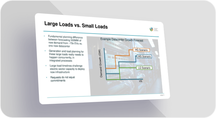 p a g e 6 Large Loads vs. Small Loads Fundamental planning difference between forecasting 500MW of new demand from ~75k EVs vs. one new datacenter Generation and load planning for these large loads really needs to happen concurrently, in integrated processes Large - load timelines challenge electric sector capacity to deploy new infrastructure Requests do not equal commitments Example Datacenter Growth Forecast HG Scenario MG Scenario LG Scenario YR Demand Growth (GW)