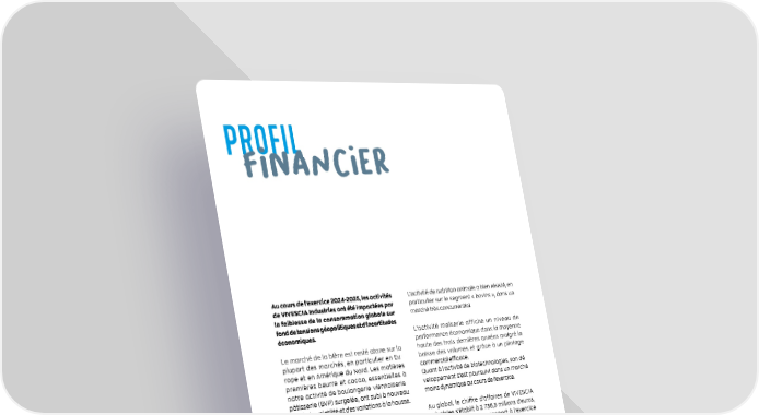 Au cours de l’exercice 2024-2025, les activités de VIVESCIA Industries ont été impactées par la faiblesse de la consommation globale sur fond de tensions géopolitiques et d’incertitudes économiques. Le marché de la bière est resté atone sur la plupart des marchés, en particulier en Eu- rope et en Amérique du Nord. Les matières premières beurre et cacao, essentielles à notre activité de boulangerie-viennoiserie- pâtisserie (BVP) surgelée, ont subi à nouveau une forte volatilité et des variations à la hausse. Dans des conditions de marché peu dynamiques, les équipes ont activé des plans d’action d’efficience opérationnelle et de réduction des coûts pour maintenir le niveau de performance économique le plus satisfaisant possible. Le projet de doter Délifrance (activité de BVP) d’un nouvel actionnaire – le groupe familial Vandemoortele – a été annoncé le 28 mars 2025. Sous réserve de l’avis des autorités de la concurrence, la finalisation de l’opération est prévue d’ici la fin de l’année civile 2025. Les trois métiers malterie, meunerie et BVP, qui représentent 91 % du chiffre d’affaires du périmètre de VIVESCIA Industries, ont affiché un chiffre d’affaires de 2,5 milliards d’euros. L’activité de nutrition animale a bien résisté, en particulier sur le segment « bovins », dans un marché très concurrentiel. L’activité maïserie affiche un niveau de performance économique dans la moyenne haute des trois dernières années malgré la baisse des volumes et grâce à un pilotage commercial efficace. Quant à l’activité de biotechnologies, son dé- veloppement s’est poursuivi dans un marché moins dynamique au cours de l’exercice. Au global, le chiffre d’affaires de VIVESCIA Industries s’établit à 2 736,5 millions d’euros, en retrait de 4,4 % par rapport à l’exercice précédent. La performance économique s’établit à 153,6 millions d’euros, en baisse de 31,6 millions d’euros par rapport à l’exercice précédent, qui était historiquement élevé. VIVESCIA Industries a vu sa dette diminuer de 18,6 millions d’euros, passant à 492 millions d’euros. Durant l’exercice, VIVESCIA Industries a poursuivi, dans chacun des métiers, le déploiement des plans d’action LINK, la démarche de développement durable du Groupe. La stratégie climat se traduit par un programme de décarbonation et des investissements avec, cette année, la mise en service, en Espagne, d’une centrale de biomasse à Séville et d’un parc photovoltaïque à San Adrián pour nos malteries. PROFIL fiNaNCIer Cahiers des actionnaires 2024-2025 09