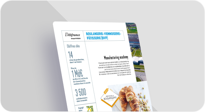 Chiffres clés 14 sites de production, dont 7 en France Plus de 1 Md€ de CA et 2,1 milliards de viennoiseries vendues dans le monde 3 500 collaborateurs dans le monde Que retenir de l'exercice 24/25 ? R. O. La forte inflation et les difficultés opérationnelles mettent à l’épreuve le secteur de la boulangerie. Cependant, le potentiel de croissance en Europe est toujours là, en particulier sur les catégories de la viennoiserie et des pains spéciaux. La boulangerie reste un marché vecteur de plaisir et porté par l’évolution des habitudes de consommation : snacking, recherche d’expériences nouvelles, augmentation d’un mode de vie flexitarien sont autant d’opportunités pour le marché. rOBert O'BOYLe Directeur général de Délifrance Manufacturing academy Plus qu’un parcours de formation, la Manufacturing Academy lancée cette année marque un tournant : faire de la compétence un accélérateur durable de la performance collective et de l’engagement. Ce cursus intégré de formation sur mesure comporte 15 modules. Il est accessible en six langues et mobilise 150 formateurs internes. BOULANGERIE-VIENNOISERIE- PÂTISSERIE (BVP) Engagé dans L'AnNée vUe PAr... Cahiers des actionnaires 2024-2025 19