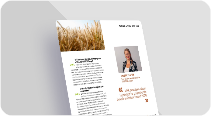 Is it fair to say that LINK drives progress within the VIVESCIA Group? J.-M. C. Absolutely. It is an engine of progress internally, as LINK permeates all business lines and all functions. LINK is not just an additional task. Our sustainable development approach makes everyone accountable and constantly encourages us to think about our work differently. This also requires training for our teams, which is why we launched the LINK School, an e-learning course accessible to all employees since June 2025. Is this also the case throughout your value chains? J.-M. C. LINK also drives progress externally, particularly across our value chains, as it helps to shed light on what drives our sustainable performance and on the opportunities to create additional value. TRANSITIONS is obviously the perfect illustration of this, upstream and downstream. Ultimately, LINK secures our activities by working toward their medium- to long-term sustainability: strengthening the resilience of their ecosystems means identifying risks in order to better anticipate and manage them, and in doing so, secure our customers’ supplies. TaKING AcTIoN WITH LINK LINK provides a robust foundation for projecting the Group’s ambitions toward 2030. ésilience APRIL 2025 LINK workshop with the Board of Directors Group LINK CSR Committee MAY FEB. JAN. APRIL MAY FEB. JUNE Launch of the VIVESCIA/UniLaSalle research chair Launch of the VIVESCIA Group’s nature footprint assessment Certification of 2030 climate targets by the SBTi Launch of LINK by Malteurop Validation of Francine’s the brand social responsibility approach September 19, 2025: LINK Workshop – Report of 2024-25 results Launch of biodiversity diagnostics for all VIVESCIA Cooperative members Renewal of the three-year partnership with Banques Alimentaires 3rd seminar dedicated to the Environmental Charter Launch of the LINK School e-learning course for all Group employees TRANSITIONS grows: 420 farmer-cooperators engaged in the program JUNE SEPT. SEPT. VaLÉRIe FRAPIER Group CSR Director and Director of the TRANSITIONS program SEPT. OCT. 33