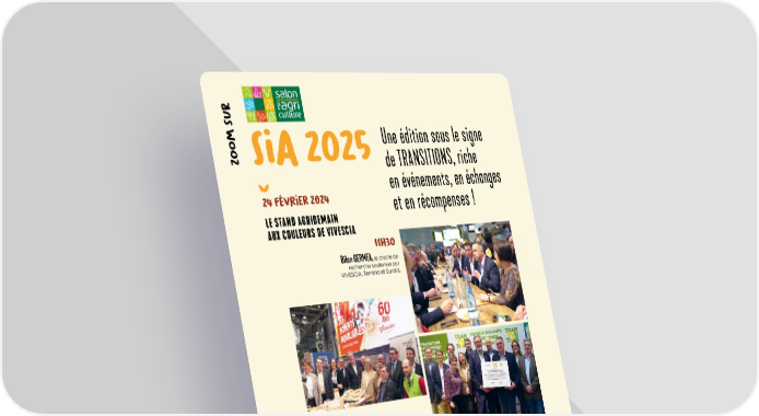 11H30 Bilan GERMEA, la chaire de recherche soutenue par VIVESCIA, Terrena et Euralis. Table ronde « Comment le programme TRANSITIONS peut-il contribuer à adresser certains enjeux RSE d’industriels ? » avec Noémie Levé, responsable RSE de Malteurop, Valérie Frapier, directrice RSE VIVESCIA et du programme TRANSITIONS, Isabelle Sucra, directrice RSE d’Heineken France, Adrien Trompier, directeur secteur agro de Quantis, Julien Roy, directeur stratégie, développement et RSE de Malteurop, et Olivier Hautin, directeur général de Malteurop. 12H30 Table ronde autour de la filière Francine Regards croisés autour de la marque iconique Francine, tour d’horizon des attentes des consommateurs et des enjeux de la compétitivité. 14H00 Forum TRANSITIONS Signature de la duplication du programme TRANSITIONS en présence de Christoph Büren, Président du Groupe VIVESCIA, David Saelens, Président du Groupe Noriap, Bruno Bonnell, secrétaire général pour l’investissement chargé de France 2030. 24 FéVrIEr 2024 LE STAND AGRIDEMAIN AUX COULEURS DE VIVESCIA zOOm sUR Une édition sous le signe de TRANSITIONS, riche en événements, en échanges et en récompenses ! sIa 2025 54