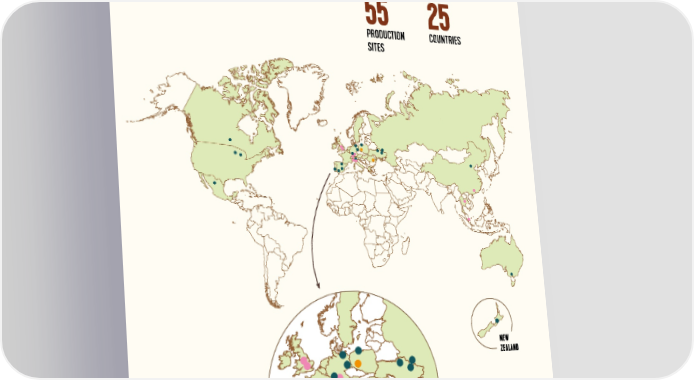 OUR SITES to the world 55 25 PRODUCTION COUNTRIES SITES NEW ZEALAND 7