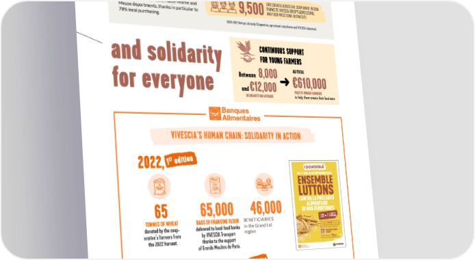 FOSTERING CONNECTIONS FIRST SOCIO-ECONOMIC IMPACT STUDY IN OUR REGION: The group’s key role in terms of economic 1,540 8,000 development and employment x5 Using ImpacTer, a study carried out DIRECT JOBS = INDIRECT OR by Vertigo Lab measured the positive WITH VIVESCIA INDUCED JOBS impact of the Group’s businesses and the trickle-down effect on rural areas in the JOBS CREATED ACROSS THE COOPERATIVE REGION THANKS TO VIVESCIA GROUP’S AGRICULTURAL Marne, Ardennes, Aube, Haute-Marne and 9,500AND FOOD PROCESSING BUSINESSES Meuse departments, thanks in particular to 78% local purchasing. 2020-2021 Vertigo Lab study (Cooperative, agricultural subsidiaries and VIVESCIA Industries) CONTINUOUS SUPPORT and solidarity FOR YOUNG FARMERS Between 8,000 AU TOTAL for everyone and €12,000 ➜ €610,000 PAID TO YOUNG FARMERS IN GRANTS ON AVERAGE to help them create their business VIVESCIA’S HUMAN CHAIN: SOLIDARITY IN ACTION ST edition VIVESCIA_AFFICHES_DON GRAIN 2023-V2 copie.pdf 1 23/05/2023 17:55 2022, 1 #dondeblé er DU 1 JUIN AU 30 SEPTEMBRE 2023 ENSEMBLE LUTTONS CONTRE LA PRÉCARITÉ C M J CM MJ ALIMENTAIRE CJ CMJ 65 65,000 46,000 N DE NOS TERRITOIRES tonne 750paquets de TONNES OF WHEAT BAGS OF FRANCINE FLOUR BENEFICIAIRIES 1de blé Avec vous, agriculteurs-coopérateurs, pour ceux donated by the coop- delivered to local food banks in the Grand Est qui le souhaitent, VIVESCIA continue à s’engager avec les Banques Alimentaires pour la seconde region année sur les territoires de la Coopérative. erative’s farmers from by VIVESCIA Transport POUR FAIRE UN DON, FLASHEZ the 2022 harvest. thanks to the support Formulaire disponible sur of Grands Moulins de Paris. En savoir plus : [email protected] nd edition 2023 2 In a new wave of solidarity, with the 2023 86 TONNES OF WHEAT were donated by VIVESCIA farmers. Following a call from the Ministry of agriculture in the autumn, VIVESCIA Groupe and its subsidiary, Grands Moulins de Paris, decided to donate a further 36 TONNES OF FLOUR 100,000 BAGS OF FRANCINE FLOUR donated to Banques Alimentaires (25% of their national annual needs.) ➜ 49