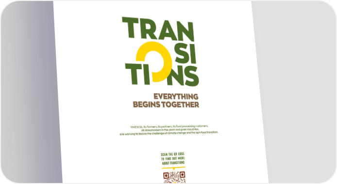 VIVESCIA, its farmers, its partners, its food processing customers, all stakeholders in the plant and grain industries, are working to tackle the challenge of climate change and the agri-food transition. SCAN THE QR CODE TO FIND OUT MORE ABOUT TRANSITIONS
