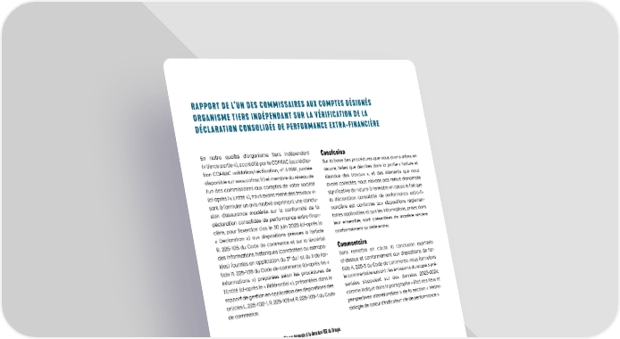 RAPPORT DE LUN DES COMMISSAIRES AUX COMPTES DSIGNS ORGANISME TIERS INDPENDANT SUR LA VRIFICATION DE LA DCLARATION CONSOLIDE DE PERFORMANCE EXTRA-FINANCIRE En notre qualit dorganisme tiers indpendant ( tierce partie ), accrdit par le COFRAC (accrdita tion COFRAC validation/vrification, n 3 1891, porte disponible sur www.cofrac.fr) et membre du rseau de lun des commissaires aux comptes de votre socit (ci aprs l Entit ), nous avons men des travaux vi sant formuler un avis motiv exprimant une conclu sion dassurance modre sur la conformit de la dclaration consolide de performance extra finan cire, pour lexercice clos le 30 juin 2025 (ci aprs la Dclaration ) aux dispositions prvues larticle R. 225 105 du Code de commerce et sur la sincrit des informations historiques (constates ou extrapo les) fournies en application du 3 du I et du II de lar ticle R. 225 105 du Code de commerce (ci aprs les Informations ) prpares selon les procdures de lEntit (ci aprs le Rfrentiel ), prsentes dans le rapport de gestion en application des dispositions des articles L. 225 102 1, R. 225 105 et R. 225 105 1 du Code de commerce. Conclusion Sur la base des procdures que nous avons mises en uvre, telles que dcrites dans la partie Nature et tendue des travaux , et des lments que nous avons collects, nous navons pas relev danomalie significative de nature remettre en cause le fait que la dclaration consolide de performance extra fi nancire est conforme aux dispositions rglemen taires applicables et que les Informations, prises dans leur ensemble, sont prsentes de manire sincre conformment au Rfrentiel. Commentaire Sans remettre en cause la conclusion exprime ci dessus et conformment aux dispositions de lar ticle A. 225 3 du Code de commerce, nous formulons le commentaire suivant : les missions du scope 3 pr sentes sappuient sur des donnes 2023 2024, comme indiqu dans le paragraphe tat des lieux et perspectives damlioration de la section Mtho dologie de calcul dindicateur cl de performance . Pour aller plus loin : rapport EY disponible sur demande la direction RSE du Groupe. 78