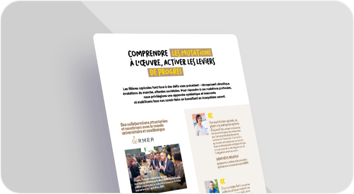 CO m P r E n D r E LE s M u TATIO ns L'UVRE, A c TI v ER LE s LEVIE rs DE P r OG r s Les filires agricoles font face des dfis sans prcdent changement climatique, volutions du march, attentes socitales. Pour rpondre ces mutations profondes, nous privilgions une approche systmique et innovante et mobilisons tous nos savoir-faire en travaillant en cosystme ouvert. 1. Groupe dtudes et de recherches sur les mutations de lentreprise agricole. Adosse au fonds de dotation de luniversit fdrale Toulouse Midi-Pyrnes, la chaire est porte par Toulouse INP-ENSAT avec le soutien de trois mcnes : les groupes coopratifs VIVESCIA, Euralis et Terrena. Il y a un enjeu fort ce que les politiques publiques intgrent ces volutions parce que, sinon, on va passer ct d'un certain nombre de transformations ncessaires pour une ferme France qui perd parfois aussi en comptitivit sur les grands marchs internationaux. Cette perte de comptitivit est souvent lie l'incapacit qu'on a penser ces changements structurels, les reconnatre. F ran o I s P u R s EIGLE Sociologue, auteur de Une agriculture sans agriculteurs et professeur des universits AgroToulouse et co-titulaire de la chaire GERMEA Une exploitation agricole, ou plutt une entreprise agricole daujourd'hui, emprunte beaucoup des caractristiques des entreprises que l'on rencontre dans les autres secteurs de l'conomie. C'est--dire qu'on a des entreprises qui, au travers d'une combinaison de stratgies de type entrepreneurial, se dveloppent par de l'intgration amont ou aval. g E n E v I v E NG u YE n Agroconomiste, professeure des universits AgroToulouse et co-titulaire de la chaire GERMEA VIVESCIA est partenaire de la chaire GERMEA 1 depuis sa cration en 2021, premire chaire denseignement et de recherche ddie aux mutations des exploi tations et des entreprises agricoles. Porte par une quipe denseignants chercheurs de Toulouse INP, la chaire analyse les nouvelles formes dorganisations et leur place dans la recomposition des chanes de valeur. Loriginalit du projet est de croiser le regard de sociologues, dconomistes et de gestionnaires pour clairer : la transformation acclre des exploitations agricoles en une diversit de nouvelles entreprises de production ; les nouvelles figures du salariat, les fonctions, les modalits de gestion de la main duvre et des pratiques managriales ; linsertion des nouvelles entreprises agricoles dans les filires et les territoires, du local au global ; leurs performances et leur capacit recomposer les chanes de valeur et rpondre de nouveaux dfis conomiques, environnementaux et sociaux. Franois Purseigle et Genevive Nguyen, tous deux co-titulaires de la chaire GERMEA ont prsent le bilan de quatre ans de recherche loccasion du Salon international de lagriculture 2025. Des collaborations structures et novatrices avec le monde universitaire et acadmique 20