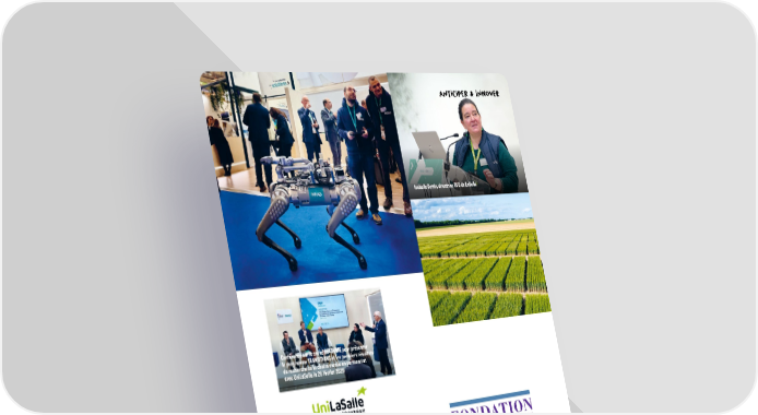 A n TICIPE r & inn O v ER VIVESCIA et UniLaSalle ont lanc en 2024 la chaire de recherche Des fermes rsilientes, bnfiques pour le climat et la biodiversit , en partenariat avec lInstitut national de recherche pour lagriculture, lalimentation et lenvironnement (INRAE) et dans le cadre du programme TRANSITIONS. Lobjectif : rpondre aux enjeux de la transition agrocologique et bas carbone par la recherche et linnovation. Trois axes structurent les travaux en cours. Biodiversit : tude de limpact des amnagements paysagers (haies, mares, parcelles...) sur la biodiver sit, avec des donnes satellites et des outils dIA. Un outil de caractrisation lchelle du paysage est en projet. Adaptation climatique : analyse varitale sur cinq ans dessais de bl, orge et colza pour identifier les varits les plus adaptes aux futurs contextes cli matiques. Rduction des GES : identification de pratiques agrocologiques pour amliorer le bilan carbone des systmes de culture. En septembre 2025, VIVESCIA apporte son soutien la Fondation NEOMA dans le cadre du dveloppement de la chaire Bioconomie et dveloppement soutenable , au travers de travaux en lien avec la data et le programme TRANSITIONS. Une signature officielle a eu lieu fin novembre 2025. La mission de cette chaire, dveloppe par NEOMA, est d'accompagner la transition cologique des entreprises et des territoires, notamment grce la bioconomie. Pour cela, la chaire mne des recherches en conomie et en management de la transition cologique, au plus prs des proccupations des acteurs socio conomiques. Isabelle Gattin, directrice R&D UniLaSalle Confrence sur le stand de lINRAE pour prsenter le programme TRANSITIONS et les premiers rsultats de recherche de la chaire mene en partenariat avec UniLaSalle le 25 fvrier 2025 21