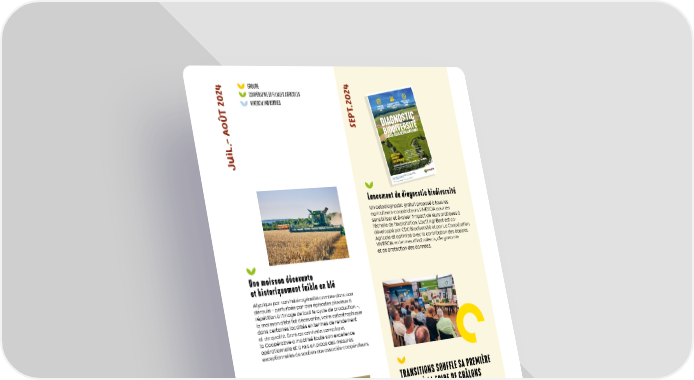 Lancement du diagnostic biodiversit Un autodiagnostic gratuit propos tous les agriculteurs cooprateurs VIVESCIA pour les sensibiliser et valuer limpact de leurs pratiques lchelle de lexploitation. Loutil AgriBest est co dvelopp par CDC Biodiversit et par La Coopration Agricole et optimis avec la contribution des quipes VIVESCIA en termes dindicateurs, dergonomie et de protection des donnes. OPRATION #DON DE BL Lancement de la 3 e dition Don de bl auprs des agriculteurs. TRANSITIONS SOUFFLE SA PREMIRE BOUGIE LA FOIRE DE CHLONS et poursuit sa lance et concrtise son ambition avec 220 nouveaux agriculteurs pour la rcolte 2025 et pour trois ans, soit au total 420 engags dans le programme. comprendre et valuer les effets de vos pratiques agricoles sur la biodiversit identifier et visualiser les voies de progrs pour des pratiques agricoles en faveur de la biodiversit permettre votre Cooprative de vous proposer un accompagnement technique sur mesure et des formations adaptes Ce diagnostic biodiversit est propos gratuitement tous les associs-cooprateurs VIVESCIA. Pour toute information, contactez votre agronome spcialise sur l'eau et la biodiversit [email protected] *AgriBEST est un outil codvelopp par La Coopration Agricole et CDC BIODIVERSITE LANCEZ-VOUS DES MAINTENANT DIAGNOSTIC BIODIVERSITE AVEC LOUTIL AGRIBEST * , VOUS POURREZ et dcouvrez notre espace ddi sur tous les enjeux Biodiversit avec des vidos, un tutoriel, un guide biodiversit sur Arterre. DMARREZ DS MAINTENANT EN VOUS CONNECTANT SUR SIMPLE, GRATUIT ET RAPIDE 40MIN PARTIR DU 3 SEPTEMBRE 2024 ACCESSIBLE TOUS LES ASSOCIS-COOPRATEURS VIVESCIA VIVESCIA_AGRIBEST_AFFICHE_IMPRIMEUR.pdf 1 19/07/2024 08:47 Ju I l.- A O T 2024 s EP t.2024 Une moisson dcevante et historiquement faible en bl Atypique par son htrognit comme dans son droul perturbe par des pisodes pluvieux rptition limage de tout le cycle de production , la moisson dt fut dcevante, voire catastrophique dans certaines localits en termes de rendement et de qualit. Dans ce contexte compliqu, la Cooprative a mobilis toute son excellence oprationnelle et a mis en place des mesures exceptionnelles de soutien aux associs cooprateurs. COOPRATIVE ET FILIALES AGRICOLES VIVESCIA INDUSTRIES GROUPE TOP 10 Le Groupe VIVESCIA class 1 parmi les 10 entreprises franaises les plus avances dans la rduction des missions lies lagriculture, aux forts et aux sols. 1. Source : baromtre Open Climat 51