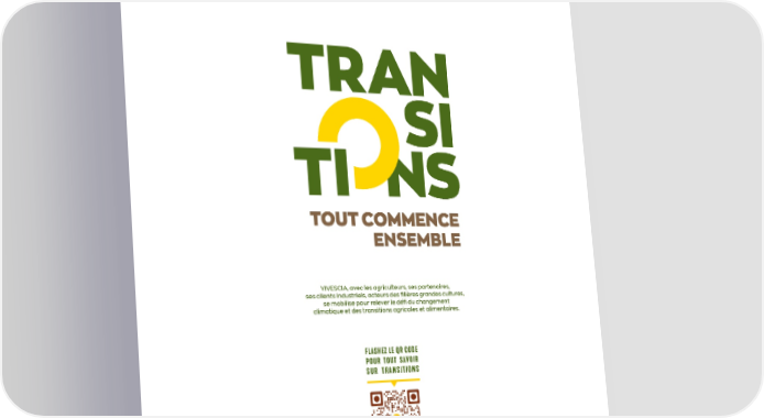 ENSEMBLE VIVESCIA, avec les agriculteurs, ses partenaires, ses clients industriels, acteurs des filières grandes cultures, se mobilise pour relever le défi du changement climatique et des transitions agricoles et alimentaires. FLASHEZ LE QR CODE POUR TOUT SAVOIR SUR TRANSITIONS