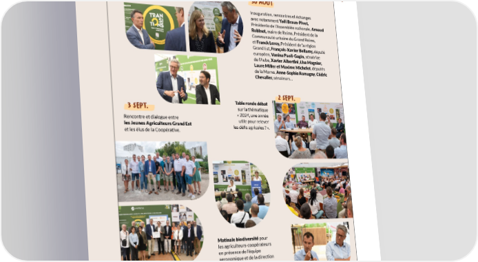 Au fil des liens... BEST OF À RETROUVER ICI Foire de Châlons R u Retour en images sur ces dix jours d’intenses échanges. Convivialité, rencontres, s regards croisés et débats, publics professionnels, agriculteurs, grand public m et visites de parties prenantes… la foire de Châlons (Marne), c’était tout cela à la fois ! o o Z 30 août Inauguration, rencontres et échanges avec notamment Yaël Braun-Pivet, Présidente de l’Assemblée nationale, Arnaud Robinet, maire de Reims, Président de la Communauté urbaine du Grand Reims, et Franck Leroy, Président de la région Grand Est, François-Xavier Bellamy, député européen, Vanina Paoli-Gagin, sénatrice de l’Aube, Xavier Albertini, Lise Magnier, Laure Miller et Maxime Michelet, députés de la Marne, Anne-Sophie Romagny, Cédric Chevalier, sénateurs… 2 sepT. Table ronde débat 3 sepT. sur la thématique Rencontre et dialogue entre « 2024, une année les Jeunes Agriculteurs Grand Est utile pour relever et les élus de la Coopérative. les défis agricoles ? ». Matinale biodiversité pour les agriculteurs-coopérateurs en présence de l’équipe agronomique et de la direction RSE LINK. Objectifs : partager les enjeux de la biodiversité en Signature d’un nouveau partenariat agriculture, les attentes de la de trois ans « Don de blé/Francine » société et lancer le diagnostic en présence de Christoph Büren, biodiversité AgriBest pour Président de VIVESCIA, et Bernard l’exploitation. Bonnes, Vice-Président de la Fédération POUR EN SAVOIR + française des Banques Alimentaires. REPORTEZ-VOUS 30 août au 8 sepT. 2024 À LA PAGE 18 RAPPORT INTÉGRÉ 2023-2024 51