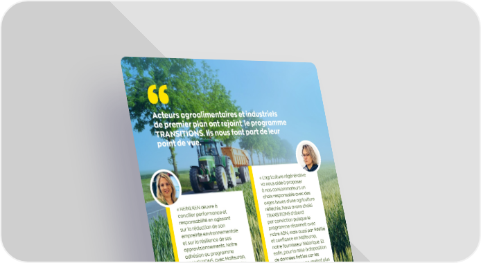 « HEINEKEN œuvre à concilier performance et responsabilité en agissant sur la réduction de son empreinte environnementale et sur la résilience de ses approvisionnements. Notre adhésion au programme TRANSITIONS, avec Malteurop, s’inscrit pleinement dans cette vision. » Isabelle Sucra Directrice RSE Heineken France « L’agriculture régénérative va nous aide à proposer à nos consommateurs un choix responsable avec des orges issues d’une agriculture réfléchie. Nous avons choisi TRANSITIONS d’abord par conviction puisque le programme résonnait avec notre ADN, mais aussi par fidélité et confiance en Malteurop, notre fournisseur historique. Et enfin, pour la mise à disposition de données fiables car les consommateurs ne veulent plus de discours mais des actes, des preuves, chiffres à l’appui. » Maud Carrière Responsable RSE Brasserie Castelain Acteurs agroalimentaires et industriels de premier plan ont rejoint le programme TRANSITIONS. Ils nous font part de leur point de vue. « Nous sommes fiers de rejoindre le programme TRANSITIONS aux côtés de VIVESCIA et de Sedamyl dans le cadre de notre feuille de route agriculture régénérative. Nous croyons au pouvoir transformateur de l’agriculture régénérative et à la nécessité d’un engagement collectif pour faire évoluer durablement nos filières. » Morgane Yvergniaux Directeur climat et nature Pernod Ricard « Nous voulons co-construire un avenir où l’agriculture régénérative devient la norme, en stimulant l'innovation et en proposant des aliments savoureux pour nourrir la planète. Pour cela, nous devons accompagner le plus grand nombre d'agriculteurs engagés. Nous collaborons avec Grand Moulins de Paris depuis de nombreuses années sur nos achats de farine, et ce programme nous a amenés plus loin en termes d'innovation et de développement. » Jean-Philippe Michaux CFO Puratos 20