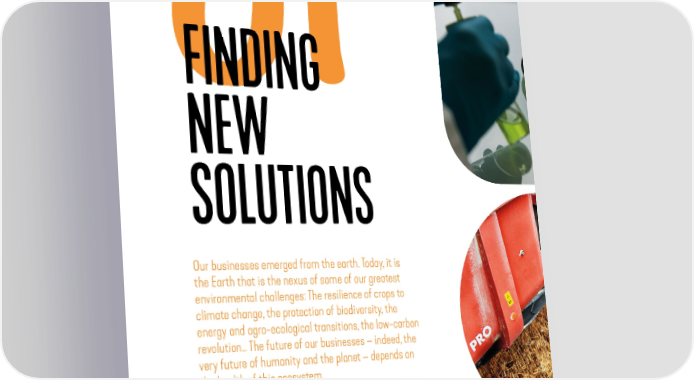 PART FINDING 01 NEW SOLUTIONS Our businesses emerged from the earth. Today, it is the Earth that is the nexus of some of our greatest environmental challenges: The resilience of crops to climate change, the protection of biodiversity, the energy and agro-ecological transitions, the low-carbon revolution… The future of our businesses – indeed, the very future of humanity and the planet – depends on the health of this ecosystem. The only solutions are systemic. So let’s join forces and put our heads together to find new solutions! 16