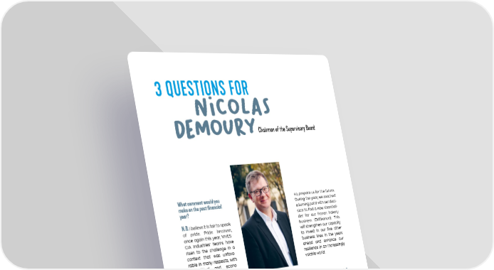Chairman of the Supervisory Board 3 QUESTIONS FOR niCOLAS DEMOURy What comment would you make on the past financial year? N. D. I believe it is fair to speak of pride. Pride because, once again this year, VIVES- CIA Industries’ teams have risen to the challenge in a context that was unfavo- rable in many respects, with geopolitical and econo- mic turbulence and a gene- ral decline in consumption, particularly in our malting business, which is facing a sluggish beer mar- ket. But I want to emphasize this point: despite a difficult and complex environment, our teams never gave up — cost control, commercial agi- lity, operational efficiency. And more than that, they continued to prepare for the future. Speaking of the future, the world is changing. Isn’t this the right time for VIVESCIA Industries to change as well? N. D. VIVESCIA Industries is always changing! The year was marked by a series of events that signal a positive new momentum that will strengthen our competitiveness and, in doing so, prepare us for the future. During the year, we reached a turning point with our deci- sion to find a new sharehol- der for our frozen bakery business (Délifrance). This will strengthen our capacity to invest in our five other business lines in the years ahead and enhance our resilience in an increasingly volatile world. So 2025 marks a turning point? A new dynamic? N. D. Yes, and it is a collective responsibility shared by all stakeholders. We have stren- gths: highly motivated, competent teams, and greater room for maneuver. With our new Managing Director, Guillaume Mothe, we are entering a new phase. It will be rolled out through new development projects. This represents a new opportunity to forge stron- ger ties with our cooperative partners. This momentum is now underway. Shareholders’ newsletter 2024-2025 11