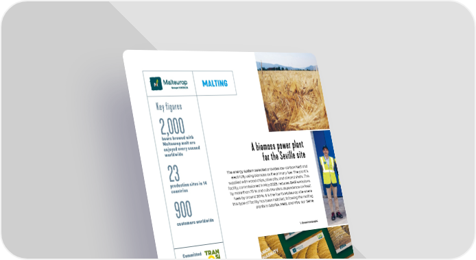 A biomass power plant for the Seville site The energy system selected provides low-carbon heat and electricity using biomass as the primary fuel. The plant is supplied with wood chips, olive pits, and almond shells. This facility, commissioned in May 2025, reduces GHG¹ emissions by more than 75 % and cuts the site’s dependence on fossil fuels by around 20 %. It is the fourth Malteurop site where this type of facility has been installed, following the malting plants in Gdańsk, Metz, and Vitry-sur-Seine. Key figures 2,000 beers brewed with Malteurop malt are enjoyed every second worldwide 23 production sites in 14 countries 900 customers worldwide How would you sum up 2024-2025? O. H. Overall, the beer market was difficult and uncertain, against a backdrop of declining alcohol consumption in countries that have traditionally been the main drivers of our industry. Major beer and whisky players saw their sales decline, which had a knock-on effect on our malt sales. Nevertheless, we chose to increase our focus on sustainability and regenerative agriculture with our customers: this represents a genuine opportunity for Malteurop and for VIVESCIA. OLiVIER hAUTIn Managing Director of Malteurop 1. Greenhouse gas MALTING Committed to A LOOK BACK At THE YEAR WiTH... Shareholders’ newsletter 2024-2025 15