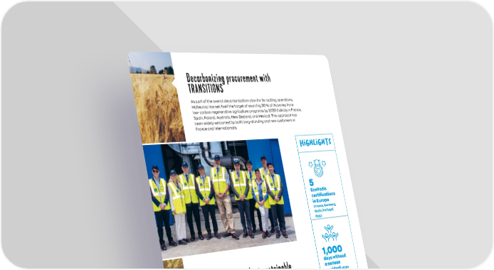 Decarbonizing procurement with TRANSITIONS Publication of our first sustainable development report The initiatives carried out this year under LINK by Malteurop are aligned with the VIVESCIA Group’s LINK policy. They demonstrate the strength and depth of our commitment at every level of the company. hiGHLiGHTS 1,000 days without a serious accident at the malting plant in Geelong, Australia 5 EcoVadis certifications in Europe (France, Germany, Spain, Portugal, Italy) What are your main sources of satisfaction? O. H. My main source of pride: zero serious accidents for the second consecutive year. I am also pleased to see the first positive effects of our “Malt Forward” strategy, with a focus on customer orientation, innovation, and sustainability. Lastly, I would highlight the launch of our LINK by Malteurop strategy, with tangible achievements as evidenced by our sustainable development report. This report is one of the pillars of our “Malt Forward” strategy. What is the outlook for the months ahead? O. H. The market remains unpredictable. We will continue our efforts to transform our customer approach, in particular by becoming even more agile in order to generate greater value. New projects spanning the entire barley–malt–beer value chain are also planned as part of LINK by Malteurop. Finally, our Malt Forward strategy is more important than ever, especially through organic and external growth projects. As part of the overall decarbonization plan for its malting operations, Malteurop has set itself the target of sourcing 30 % of its barley from low-carbon regenerative agriculture programs by 2030 (initially in France, Spain, Poland, Australia, New Zealand, and Mexico). This approach has been widely welcomed by both long-standing and new customers in France and internationally. VIVESCIA INDUSTRIES 16