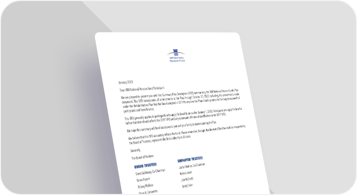 January 2023 Dear IAM National Pension Fund Participant: We are pleased to present you with this Summary Plan Description (SPD) summarizing the IAM National Pension Fund’s Plan document. This SPD incorporates all amendments to the Plan through October 31, 2022, including the amendments made under the Rehabilitation Plan that the Board adopted in 2019 to improve the Plan’s funding status for the long-term benefit of participants and beneficiaries. This SPD generally applies to participants who apply for benefits on or after January 1, 2023. Participants who apply for benefits before that date should refer to the 2017 SPD (and any summaries of material modification to the 2017 SPD). We hope this summary will be of assistance to you and your family in understanding the Plan. We believe that this SPD accurately reflects the Fund. Please remember, though, that the text of the Plan itself, as interpreted by the Board of Trustees, represents the final authority in all cases. Sincerely, The Board of Trustees UNION TRUSTEES EMPLOYER TRUSTEES Steve Galloway, Co-Chairman Justin Welner, Co-Chairman Brian Bryant Kelvin Jones Rickey Wallace Jim McGrath Dora H. Cervantes Andy Chen Este folleto contiene un resumen en inglés de los derechos y beneficios de su Plan según el Plan Nacional de Pensiones del Fondo Nacional de Pensiones de IAM. Si no encuentra las respuestas de sus preguntas en esta publicación, o si usted desea este folleto en español, puede comunicarse con la oficina del Fondo marcando al 1-800-424-9608 entre las 9:00 a.m. y 7:00 p.m. hora de la zona este, de lunes a viernes, para solicitor asistencia. También podrá dirigirse por correo a la oficina del Fondo al 99 M St., SE, Suite 600, Washington D.C. 20003-4595, o dirigir por correo electrónico a [email protected] (se le responderá por escrito y se enviará la respuesta por correo regular). Además puede ver esta publicación en español por la red a www.iamnpf.org “National Pension Fund” → “Pension Plan Documents.”