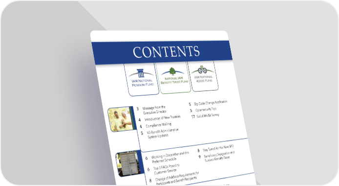 2 BENEFITS SPOTLIGHT | FALL 2021 6 Working in December and the Preferred Schedule 6 Top 3 FAQs Posed to Customer Service 8 Change of Address Requirements for Participants and Benefit Recipients 8 Stay Tuned for the New SPD 9 Beneficiary Designation and Survivor Benefits Steps 11 Autism is Now a Covered Benefit 12 COVID-19 Update 13 EyeMed Updates 14 Delta Dental Updates 3 Message from the Executive Director 4 Introduction of New Trustees 4 Compliance Mailing 5 V3 Benefit Administration System Updates 5 Zip Code Change Notification 5 Cybersecurity Tips 17 Social Media Survey 15 Access Your John Hancock Statements Online 15 New Mobile App 16 Heads-up on New SPD Coming Out at the End of the Year 16 FAQS to Help Participants CONTENTS