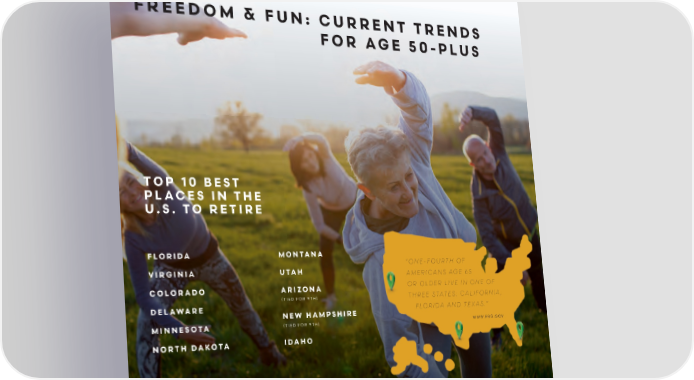 DISCOVERING NEW LAND FREEDOM & FUN: CURRENT TRENDS FOR AGE 50-PLUS TOP 10 BEST PLACES IN THE U.S. TO RETIRE FLORIDA MONTANA “ONE-FOURTH OF VIRGINIA UTAH AMERICANS AGE 65 COLORADO ARIZONA OR OLDER LIVE IN ONE OF (TIED FOR 9TH) THREE STATES: CALIFORNIA, DELAWARE FLORIDA AND TEXAS.” NEW HAMPSHIRE MINNESOTA (TIED FOR 9TH) WWW.PRG.GOV NORTH DAKOTA IDAHO 14 JOURNEY TO RETIREMENT OCTOBER 2022