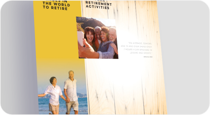Journey to Retirement Microsite Page 16 Page 18POPULAR RETIREMENT ACTIVITIES 15 TOP 10 BEST PLACES IN THE WORLD TO RETIRE “ON AVERAGE, SENIORS AGE 75 AND OVER SPEND OVER 7 HOURS A DAY ENGAGED IN LEISURE AND SPORTS.” WWW.BLS.GOV