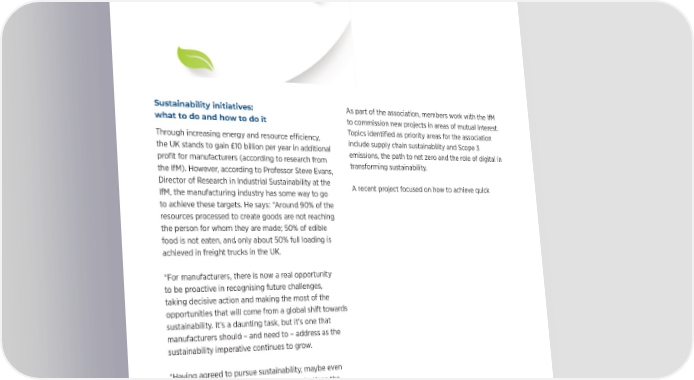 SUSTAINABILITY SPOTLIGHT | 9 For manufacturers, there is now a real opportunity to be proactive in recognising future challenges, taking decisive action and making the most of opportunities. Sustainability initiatives: As part of the association, members work with the IfM what to do and how to do it to commission new projects in areas of mutual interest. Through increasing energy and resource e昀케ciency, Topics identi昀椀ed as priority areas for the association the UK stands to gain £10 billion per year in additional include supply chain sustainability and Scope 3 pro昀椀t for manufacturers (according to research from emissions, the path to net zero and the role of digital in the IfM). However, according to Professor Steve Evans, transforming sustainability. Director of Research in Industrial Sustainability at the A recent project focused on how to achieve quick IfM, the manufacturing industry has some way to go wins in sustainability improvements. The IfM talked to achieve these targets. He says: “Around 90% of the to practitioners from a range of global manufacturing resources processed to create goods are not reaching 昀椀rms, as well as sustainable manufacturing experts, to the person for whom they are made; 50% of edible identify common success factors and best practices food is not eaten, and only about 50% full loading is in businesses that had achieved consistent, rapid achieved in freight trucks in the UK. sustainability improvements. “For manufacturers, there is now a real opportunity Small steps lead to longer-term gains to be proactive in recognising future challenges, taking decisive action and making the most of the Sustainability, when included as part of continuous opportunities that will come from a global shift towards improvement objectives, can act as a foundation sustainability. It’s a daunting task, but it’s one that for building a sustainability culture. However, it’s manufacturers should – and need to – address as the also important to note that any initiatives should be sustainability imperative continues to grow. part of a larger (long-term) sustainability agenda to avoid reverting to small improvements. “Even after a “Having agreed to pursue sustainability, maybe even step change, businesses can continue to implement setting a speci昀椀c target, for many organisations the continuous improvements to optimise the system exact pathway remains unclear. To help manufacturers and seek further sustainability improvements,” says gain clarity about both ‘what to do’ and ‘how to do it’, Steve. “Rapid sustainability improvements resulting the IfM established the Sustainability Association to from continuous improvement initiatives can create an help businesses get the support they need to progress opportunity to justify larger sustainability projects or at sustainability initiatives. least provide 昀氀exibility in the company budget.” “Manufacturing organisations want advice on the best place to start with sustainability initiatives,” Steve adds. “They want to know the best strategy for e昀昀ective returns and how to avoid common pitfalls.”