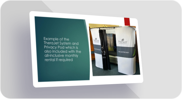 Wellness/Spa Presentation Page 11 Page 13Example of the TheraJet System and Privacy Pod which is also included with the all-inclusive monthly rental if required