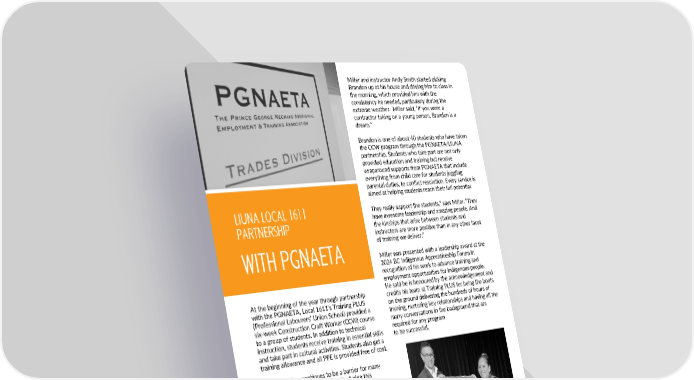 Miller and instructor Andy Smith started picking Brandon up at his house and driving him to class in the morning, which provided him with the consistency he needed, particularly during the extreme weather. Miller said, “If you were a contractor taking on a young person, Brandon is a dream.” Brandon is one of about 40 students who have taken the CCW program through the PGNAETA/LIUNA partnership. Students who take part are not only provided education and training but receive wraparound supports from PGNAETA that include everything from child care for students juggling parental duties, to conflict resolution. Every service is aimed at helping students reach their full potential. They really support the students,” says Miller. “They LIUNA LOCAL 1611 have awesome leadership and amazing people. And PARTNERSHIP the kinships that arise between students and instructors are more positive than in any other facet of training we deliver.” WITH PGNAETA Miller was presented with a leadership award at the 2024 BC Indigenous Apprenticeship Forum in recognition of his work to advance training and employment opportunities for Indigenous people. He said he is honoured by the acknowledgement and At the beginning of the year through partnership credits his team at Training PLUS for being the boots with the PGNAETA, Local 1611’s Training PLUS on the ground delivering the hundreds of hours of (Professional Labourers’ Union School) provided a training, nurturing key relationships and having all the six-week Construction Craft Worker (CCW) course many conversations in the background that are to a group of students. In addition to technical required for any program instruction, students receive training in essential skills to be successful. and take part in cultural activities. Students also get a training allowance and all PPE is provided free of cost. Transportation continues to be a barrier for many students and workers. Specifically during this program, a young student named Brandon relied on alternative transportation. When his ride became unavailable, his only alternative was taking public transportation, arriving an hour early and sitting in -15 degree weather waiting for the doors to open. Local 1611’s Training Plan Administrator Tom Miller has seen many students who let transportation 28 become a roadblock, but he was impressed by Brandon’s determination and perseverance to finish 2 “The recognition from PGNAETA is the most 0 the course. E meaningful accolade that we’ve received in U S my time.” S I | 4 2 0 Tom Miller 2 R Local 1611’s Training Plan Administrator E SCAN THE QR CODE TO SEE A LIST B M OF TRAINING COURSES BEING E T OFFERED BY LIUNA LOCAL 1611 P E S
