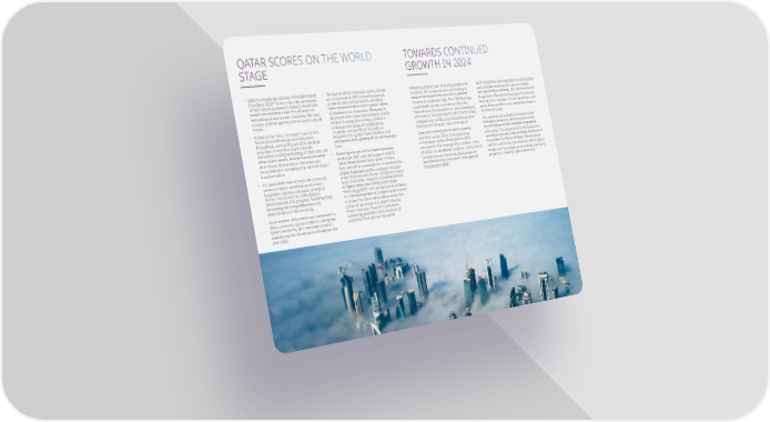| QFC ANNUAL REPORT 2023 QATAR SCORES ON THE WORLD STAGE Qatars exceptional delivery of the FIFA World Cup Qatar 2022 TM is not only a demonstration of the nations prowess in hosting world-class events but also tells a tale of a journey into technological and human innovation that had a major positive bearing on the nations digital future. Hailed as the most connected tournament, harnessing technology and innovation throughout, such as the use of AI-assisted wearables to monitor players health, innovative cooling technology in stadiums and other public places, besides numerous other tech-centric interventions, the event was monumental in propelling the national digital transformation. Its ripple effect was strongly felt across all sectors in Qatar, including construction, hospitality, tourism and sport, providing further momentum to technological advancements and progress, fundamentally increasing the competitiveness and diversification of the economy. As an enabler of business and investment in Qatar, pursuing opportunities to strengthen Qatars economy, QFC remained active in capitalising this momentum throughout the year 2023. The launch of the Innovation Dome stands as a testament to QFCs relentless pursuit to realise national aspirations, enabling Dohas transformation into a global centre of excellence for innovation. Designed in alignment with Qatar Central Banks (QCB) Fintech Strategy, the strategic platform embraces the values of collaboration, creativity, and excellence to build an ecosystem for global fintech leaders and entrepreneurs to participate in and leverage from. Breaking new ground in Qatars financial landscape, QFC, with the support of QCB, Qatar Development Bank, Qatar FinTech Hub, and other organisations, introduced the Digital Assets Lab as the inaugural initiative under its Innovation Dome. Designed to spur open innovation, research and development in digital assets and Distributed Ledger Technology (DLT), the Lab lays the foundation for the development of a digital assets sector in Qatar. The Lab is set to welcome its first cohort of participants in 2024 including fintech startups, financial institutions, technology providers and members of academia from all over the world. TOWARDS CONTINUED GROWTH IN 2024 Following another year of strong growth and progress, QFCs preparedness and energy to deepen the impact and value of its platform remains at an all-time high. The 2030 Strategy, coupled with its new core values of Quality, Future Focus, Customer Focus, and Authenticity, will serve as the roadmap for QFCs forthcoming initiatives and reinforce its role as the premier financial and business hub in the region. Qatar has a strong and resilient economy, identified as one of the fastest-growing in the region by the World Bank in 2023, and ranked 12th amongst 64 countries - most of which are developed countries - in The World Competitiveness Yearbook 2023, issued by the International Institute for Management Development (IMD). Such recognition demonstrates the favourability and competitiveness of the nations market and against this backdrop, QFC will continue to broaden its efforts to encourage and welcome leading firms, startups and entrepreneurs from around the world to set up operations, here in the State of Qatar. QFC remains committed to innovation and leveraging emerging technologies to meet market demands and maintain competitive advantage. The organisation looks forward to contributing to key state initiatives like the Joint Committee for Financial Sector Development and the continuous enhancement of the Digital Assets Lab Framework, among other significant projects, to diversify Qatars economy. TOWARDS CONTINUED GROWTH IN 2024 | QFC ANNUAL REPORT 2023