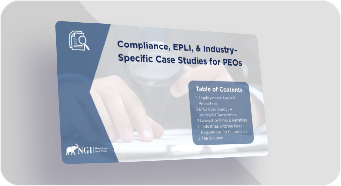 Compliance, EPLI, & Industry- Specific Case Studies for PEOs Table of Contents 1.Employement Lawsuit Protection 2.EPLI Case Study : A Wrongful Termination 3.Lawsuit or Fines & Penalties 4. Industries with the Most Regulations for Compliance 5.The Solution