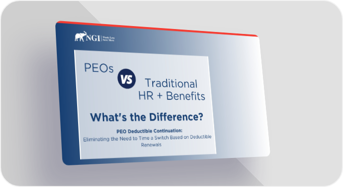 PEOs Traditional HR + Benefits What's the Difference? PEO Deductible Continuation: Eliminating the Need to Time a Switch Based on Deductible Renewals