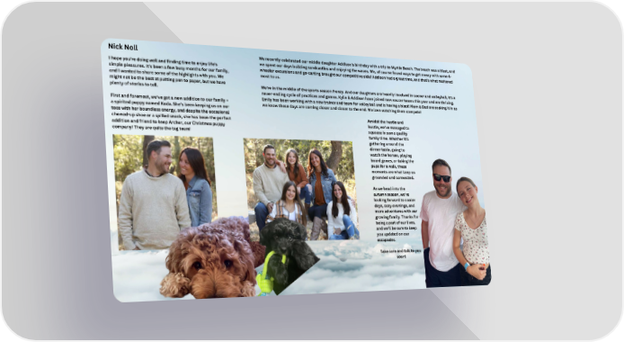 Nick Noll We recently celebrated our middle daughter Addison's birthday with a trip to Myrtle Beach. The beach was a blast, and we spent our days building sandcastles and enjoying the waves. We, of course found ways to get messy with some 4- I hope you're doing well and finding time to enjoy life's wheeler excursions and go-carting brought our competitive side! Addison had a great time, and that's what mattered simple pleasures. It's been a few busy months for our family, most to us. and I wanted to share some of the highlights with you. We might not be the best at putting pen to paper, but we have We're in the middle of the sports season frenzy. And our daughters are heavily involved in soccer and volleyball, it's a plenty of stories to tell. never-ending cycle of practices and games. Kylie & Addison have joined new soccer teams this year and are thriving. Emily has been working with a new trainer and team for volleyball and is having a blast! Mom & Dad are soaking it in as First and foremost, we've got a new addition to our family – we know these days are coming closer and closer to the end. We love watching them compete! a spirited puppy named Koda. She's been keeping us on our toes with her boundless energy, and despite the occasional Amidst the hustle and chewed-up shoe or a spilled snack, she has been the perfect bustle, we've managed to addition and friend to keep Archer, our Christmas puppy squeeze in some quality company! They are quite the tag team! family time. Whether it's gathering around the dinner table, going to watch the horses, playing board games, or taking the pups for a walk, these moments are what keep us grounded and connected. As we head into the autumn season, we're looking forward to cooler days, cozy evenings, and more adventures with our growing family. Thanks for being a part of our lives, and we'll be sure to keep you updated on our escapades. Take care and talk to you soon!