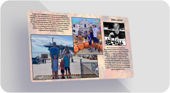 Happy Fall! Hopefully by the time you are reading this Mike Lemich newsletter, the temperature has finally dropped into weather suitable for enjoying and exploring the outdoors. A few weeks ago, we visited pumpkin village at the Dallas Arboretum with our friend who was visiting from Japan. It was your typical 90 degree fall day in Texas, but despite the heat, it was still a great opportunity to share fall and Halloween related customs with our friend who has only ever experienced Halloween from the outside looking in. We recently started our fourth-year homeschooling and the kids continue to thrive in their routines and sports. We are enjoying the flexibility it brings for traveling too. Early in September we were able to go down to Padre Island and stopped to explore the USS Lexington. My father is a big history buff and was almost as knowledgeable as the tour guides on the ship. The kids were quite shocked at how much life has changed from the mid/late 1900’s to now. I forget how much time has passed until I realize we are already almost a quarter of the way through this century!