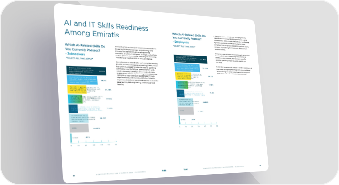 AI and IT Skills Readiness Among Emiratis Which AI-Related Skills Do You Currently Possess? - Jobseekers *SELECT ALL THAT APPLY* 0 1 0 2 0 3 0 4 0 5 0 6 0 BASIC AI: FAMILIARITY WITH THE CONCEPTS AND POTENTIAL APPLICATIONS OF ARTIFICIAL INTELLIGENCE. DATA ANALYSIS: THE ABILITY TO COLLECT, CLEAN, AND INTERPRET DATA EFFICIENTLY USING VARIOUS TOOLS AND ALGORITHMS. MACHINE LEARNING: KNOWLEDGE OF MACHINE LEARNING TECHNIQUES AND THE ABILITY TO APPLY THEM TO REAL-WORLD PROBLEMS. NATURAL LANGUAGE PROCESSING (NLP): SKILLS RELATED TO PROCESSING AND UNDERSTANDING HUMAN LANGUAGE USING COMPUTERS. ROBOTICS: KNOWLEDGE OF ROBOTS, THEIR MECHANISMS, AND HOW THEY ARE PROGRAMMED TO PERFORM TASKS. AUTOMATION TOOLS: EXPERIENCE WITH SOFTWARE OR SYSTEMS THAT AUTOMATE MANUAL TASKS. NONE OTHER 5 2 . 2 6 % 3 9 . 5 1 % 2 4 . 4 3 % 1 7. 9 0 % 1 1 . 3 2 % 2 4 . 7 9 % 2 4 . 3 8 % 1 . 8 0 % A majority of UAE National job seekers who responded to the survey (52.26%) have a basic understanding of AI concepts and applications, showcasing growing awareness of artificial intelligence in the job market. Data analysis (39.51%) follows closely, indicating the increasing importance of analytical skills in various industries. More advanced AI-related skills, such as machine learning (24.43%) and natural language processing (17.90%), remain less common, suggesting potential areas for upskilling. Automation tools (24.79%) are gaining traction, while robotics knowledge (11.32%) is still emerging. Notably, 24.38% of respondents report having no AI-related skills, highlighting a gap that could be addressed through targeted training and education initiatives. Verbatim responses also indicate specialised expertise in areas like deep learning, data engineering, and reinforcement learning. M A K I N G E M I R AT I S AT I O N A S U C C E S S 2 0 2 5 - G U I D E B O O K 3 6 Which AI-Related Skills Do You Currently Possess? - Employees *SELECT ALL THAT APPLY* 0 1 0 2 0 3 0 4 0 5 0 6 0 BASIC AI: FAMILIARITY WITH THE CONCEPTS AND POTENTIAL APPLICATIONS OF ARTIFICIAL INTELLIGENCE. DATA ANALYSIS: THE ABILITY TO COLLECT, CLEAN, AND INTERPRET DATA EFFICIENTLY USING VARIOUS TOOLS AND ALGORITHMS. MACHINE LEARNING: KNOWLEDGE OF MACHINE LEARNING TECHNIQUES AND THE ABILITY TO APPLY THEM TO REAL-WORLD PROBLEMS. NATURAL LANGUAGE PROCESSING (NLP): SKILLS RELATED TO PROCESSING AND UNDERSTANDING HUMAN LANGUAGE USING COMPUTERS. ROBOTICS: KNOWLEDGE OF ROBOTS, THEIR MECHANISMS, AND HOW THEY ARE PROGRAMMED TO PERFORM TASKS. AUTOMATION TOOLS: EXPERIENCE WITH SOFTWARE OR SYSTEMS THAT AUTOMATE MANUAL TASKS. NONE OTHER 5 3 . 6 8 % 3 8 . 2 0 % 2 4 . 0 1 % 1 7. 3 8 % 1 1 . 0 5 % 2 0 . 8 2 % 2 5 . 0 4 % 1 . 6 5 % A significant portion of UAE National employees who responded to the survey (53.68%) report having a basic understanding of AI concepts and applications, reflecting a growing awareness of artificial intelligence in the workplace. Data analysis skills (38.20%) also show strong presence, highlighting the importance of data-driven decision making. While more specialised AI-related skills such as machine learning (24.01%) and natural language processing (17.38%) are less common, they represent areas for selective upskilling where relevant to specific job functions. Overall, the survey results indicate a positive baseline of AI awareness among UAE Nationals, with opportunities to further strengthen skills related to practical workplace applications rather than technical specialisation. M A K I N G E M I R AT I S AT I O N A S U C C E S S 2 0 2 5 - G U I D E B O O K 3 7