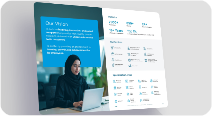 To build an inspiring, innovative, and global company that provides high-quality people solutions, delivered with unbeatable service to its customers. To do this by providing an environment for learning, growth, and advancement for its employees. Our Vision M A K I N G E M I R AT I S AT I O N A S U C C E S S 2 0 2 5 - G U I D E B O O K 0 8 Statistics Pharma & Healthcare E-commerce & Digital Logistics & Supply Chain Technology & Engineering Banking & Finance Retail & Consumer Energy & Oil Aviation & Automotive Telecom & Network Public Sector Software Engineering BI (Business Intelligence), Data & Analytics IT Infrastructure & Cybersecurity ERP & CRM Financial Crime & Compliance Specialisation Areas Our Services Corporate Services including managed PRO and GRO services Contract Staffing Permanent Recruitment and Executive Search Remote Hiring Talent Mobility and Immigration Emiratisation and Saudisation Payroll Services HR Consultancy and HR Transformation Services Business and RHQ Incorporation RPO and MSP PEO/ EOR Services 650+ Clients 7500+ Associates 24+ Industry Awards 18+ Years of Industry Experience Top 1% in the global staffing industry, as rated by NPS. M A K I N G E M I R AT I S AT I O N A S U C C E S S 2 0 2 5 - G U I D E B O O K 0 9